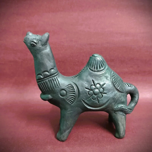 Sawai Madhopur Black Pottery Animal Figurine Sitting Deer Medium