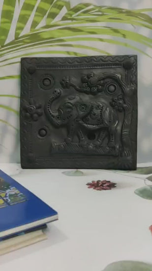 Sawai Madhopur Black Pottery Elephant Tile Art (Large)
